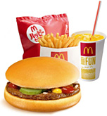 (上記セットには、マックフライポテトSサイズまたはスイートコーンと、ドリンクSサイズ、おもちゃが含まれます。)ハンバーガーセット 420円〜450円 チーズバーガーセット 440円〜470円 プチパンケーキセット 430円〜440円 チキンマックナゲットセット 470円〜490円