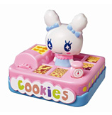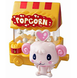 | ポップコーン屋さんに扮した「ハピハピっち」のおもちゃ。横のスイッチを押すと、ポップコーンがはじけます。 | クッキー屋さんに扮した「ラブリっち」のおもちゃ。スイッチを入れてダイヤルを回すと、「おまたせ!ラブリっちのクッキーよ!」としゃべります。 |
