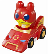 | 「まめゴッチマン」のレーシングカータイプのおもちゃ。車体後部に発射キーをさしてボタンを押すと、勢いよく走り出します。 | 「くちぱっち」のレーシングカータイプのおもちゃ。車体後部に発射キーをさしてボタンを押すと、勢いよく走り出します。 |
