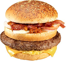 “Big America2”は、マクドナルドが誇るビーフ100%の1/4ポンドビーフパティ(通常のビーフパティの約2.5倍)を主役にし、本場アメリカンテイストを実現したハンバーガーシリーズです。本年1月から販売した“Big America”は、お客様からの反響が非常に大きく、これまでマクドナルドをご利用いただく機会の少なかった数多くのお客様にもお楽しみいただきました。マクドナルドが創業40周年を迎える2011年の最初の戦略的新商品として、“Big America”の進化版である“Big America2”キャンペーンを満を持して展開いたします。