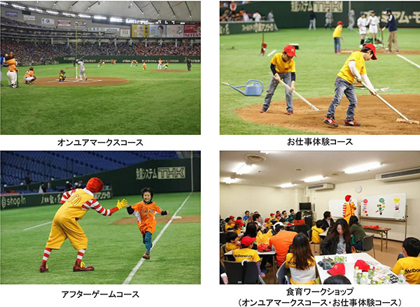 - プロ野球シーズン期間中すべての日曜日に東京ドームで開催されるジャイアンツ戦全13試合を「マクドナルドサンデー」として開催。事前応募によって選ばれた小学生とその保護者892名1,784名をご招待し、各守備位置での選手のお出迎えやグラウンドキーパーなどのお仕事体験ができるほか、東京ドームバックヤードツアーや“ドナルド・マクドナルド”による食育ワークショップも特別開催。