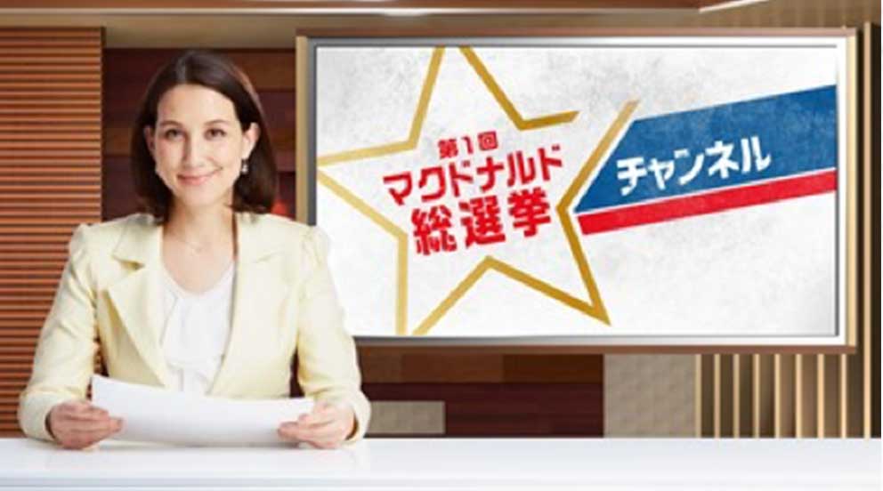 2016年12月26日(月)から一部公開していた「第1回マクドナルド総選挙のキャンペーンサイト」が、2017年1月6日(金)から本公開。立候補バーガーの「公約紹介」をはじめ、「ランキング」の情報、選挙に関連する情報を選挙速報の形式でキャスターの政井マヤさんが伝えていく「総選挙チャンネル」、お気に入りのバーガーを応援するファンの動画、また、「ツイートで投票」など、さまざまなコンテンツを展開して、「第1回マクドナルド総選挙」を盛り上げます。