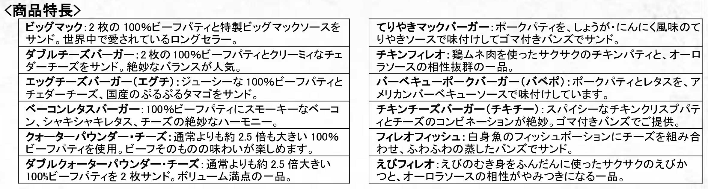 - ※1バリューセットは、サイドメニュー(マックフライポテトMサイズ、チキンマックナゲット5ピース、サイドサラダ、スイートコーンのいずれか1つ)、ドリンクMサイズ(またはマックシェイクSサイズ、カフェラテSサイズ、カプチーノSサイズのいずれか1つ)付き