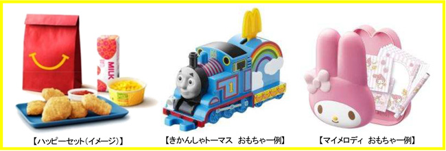 日本マクドナルド株式会社(本社:東京都新宿区、代表取締役社長兼 CEO:サラ・エル・カサノバ)は、世界中の子供たちから長年愛されている「きかんしゃトーマス」と、女の子を中心に幅広い世代に人気のサンリオキャラクター「マイメロディ」のおもちゃがセットになった、ハッピーセット「きかんしゃトーマス」「マイメロディ」を2017年2月17日(金)から期間限定で全国のマクドナルド(一部店舗除く)にて販売いたします。