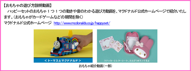 マクドナルドはこれからも「ハッピーセット」の販売を通じて、お子様の健全な成長に貢献し、ご家族の“ハッピーな笑顔があふれるお食事の場”を提供してまいります。