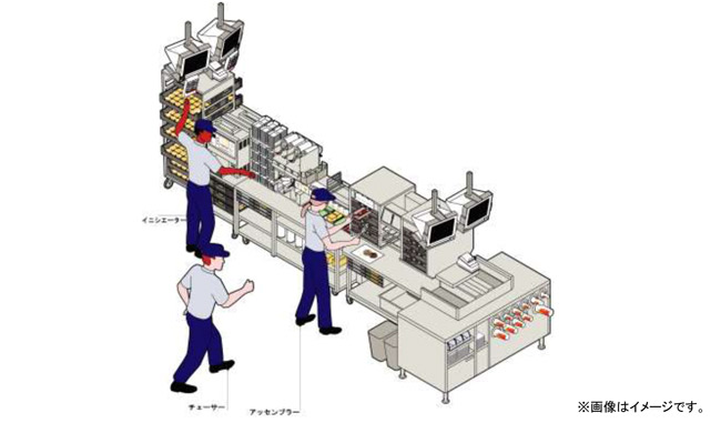 「メイド・フォー・ユー」で、いくらおいしい「できたて」のハンバーガーをお渡しできても、そこに長い時間がかかっては「クイック・サービス・レストラン」とは言えません。そこでマクドナルドは、オーダーを受け、バンズを焼いてマスタードとケチャップをトッピングし、ピクルスとオニオン、さらにパティをのせてラッピングするまでの基準となる時間を、50秒と規定しました。そのために厨房内の調理体制を一新、注文内容がPOSレジを通して厨房内のディスプレイに表示され、すぐに正確な調理に取り掛かることができます。加えて、調理時間を短縮できるトースターやスチーマーを新たに開発するなど、一つひとつの工夫の積み重ねでスピーディーな調理を実現したのです。